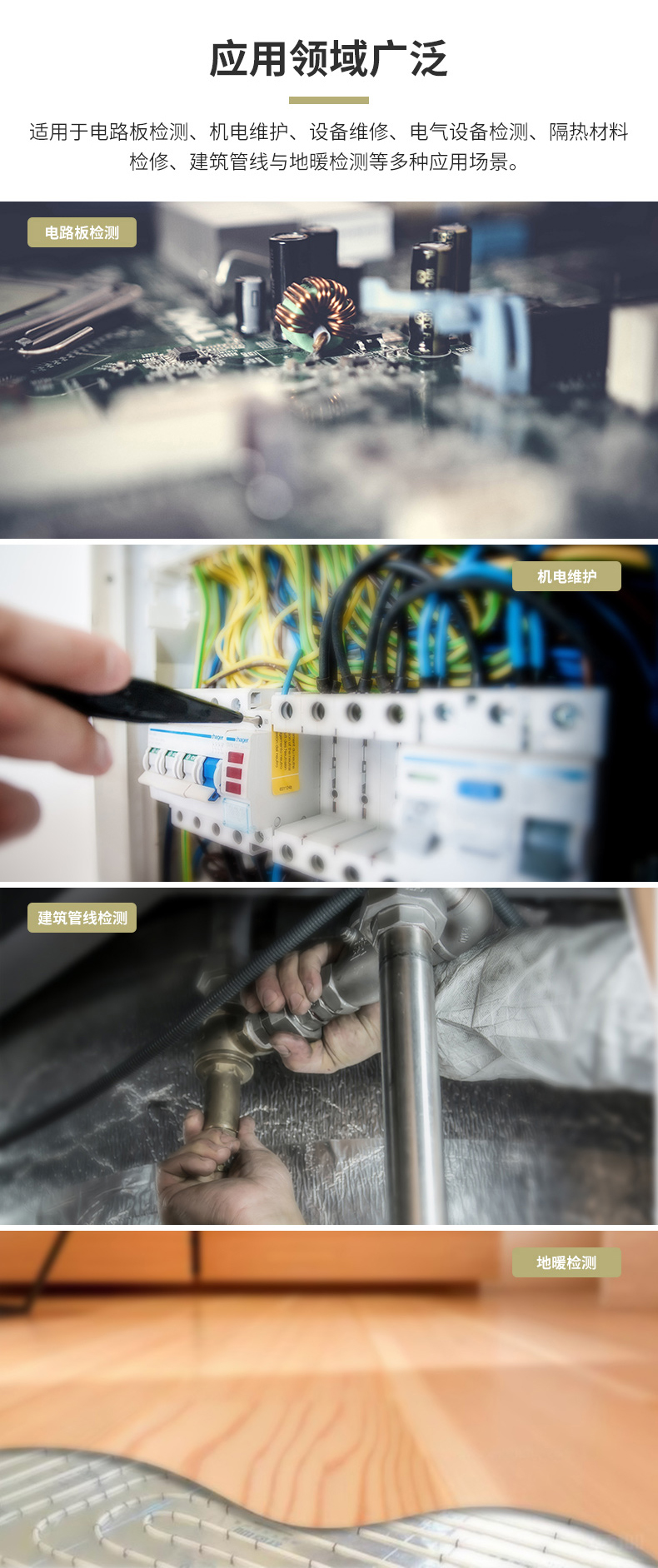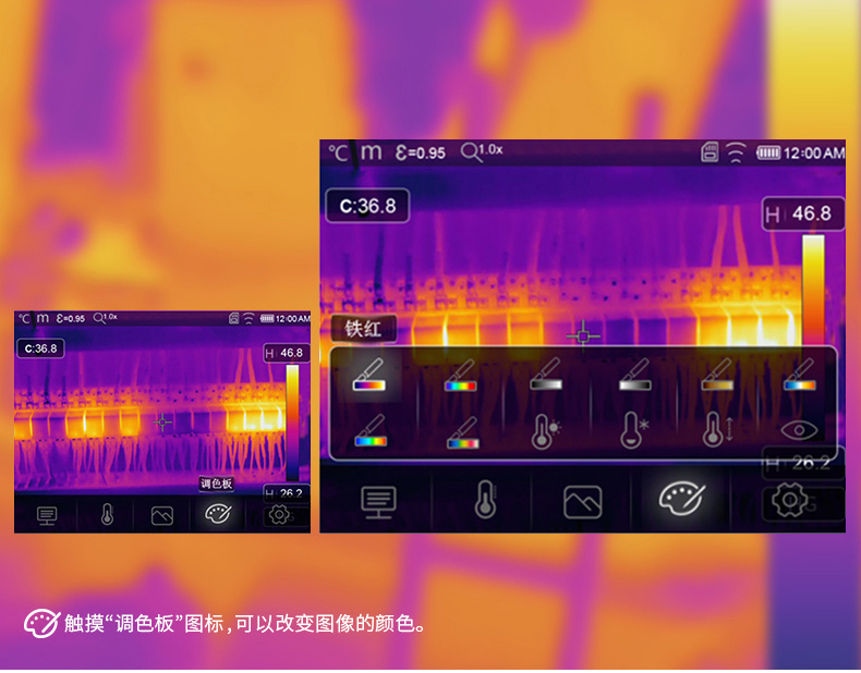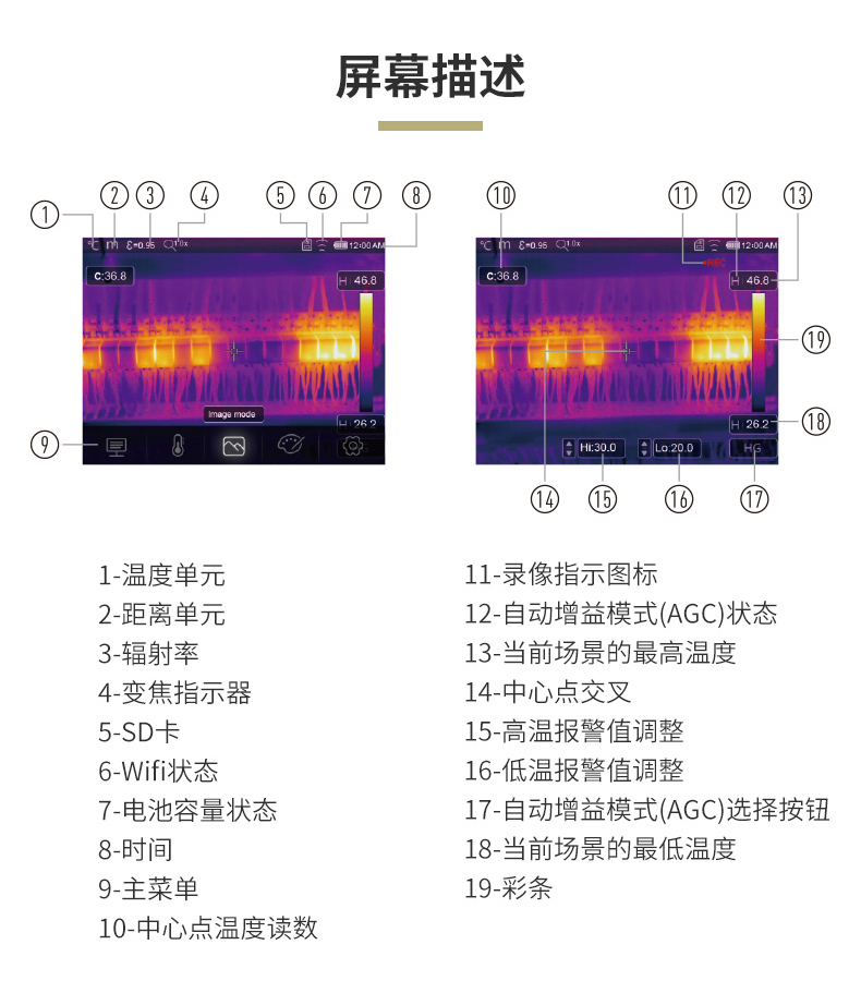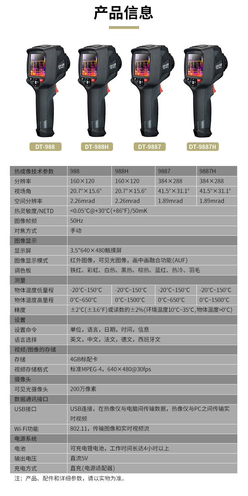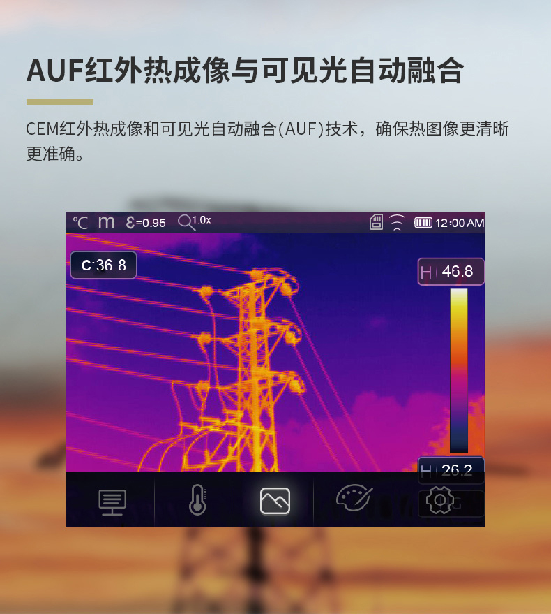 標(biāo)配鏡頭22mm,分辨率324×288,IFOV:1.14mard,視場(chǎng)角24.5×18.6°,熱靈敏度NETD<0.06℃,圖像幀頻50Hz,溫度范圍(-20-150、0-400),可見(jiàn)光分辨率640×480像素