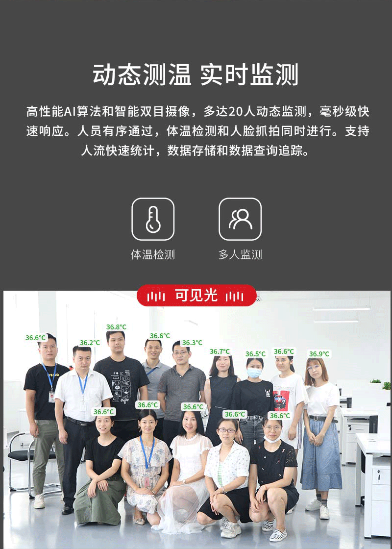 ·被測人員要求:戶外陽光照射后,或者劇烈運(yùn)動后,需在室內(nèi)環(huán)境平靜適應(yīng)5分鐘后進(jìn)行測試;人員從戶外場景進(jìn)入室內(nèi),建議經(jīng)過回廊緩沖至少10秒鐘后,再步入檢測位置,如果室內(nèi)外溫差較大時(shí),建議在室內(nèi)停留2~3min再行檢測;確保待測人員整個面部處于設(shè)備攝像視野內(nèi),同時(shí)面部及額頭不能被遮擋(帽子、圍巾、墨鏡、面具、退燒貼等可能遮擋面部的物件,建議先提前摘下,適應(yīng)0.5-1分鐘后再進(jìn)行測試。)