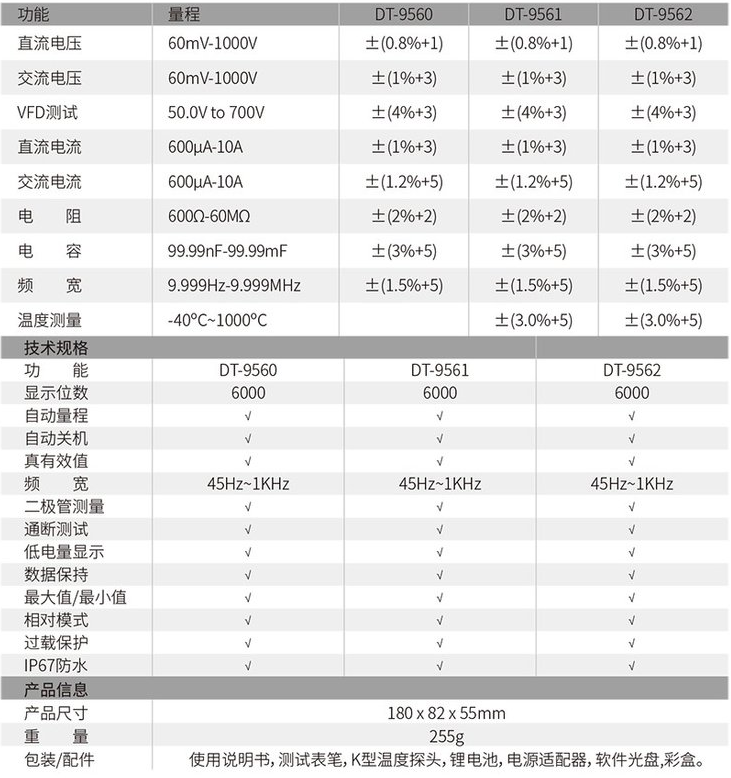 華盛昌DT-9560工業(yè)級數(shù)字萬用表產(chǎn)品介紹: